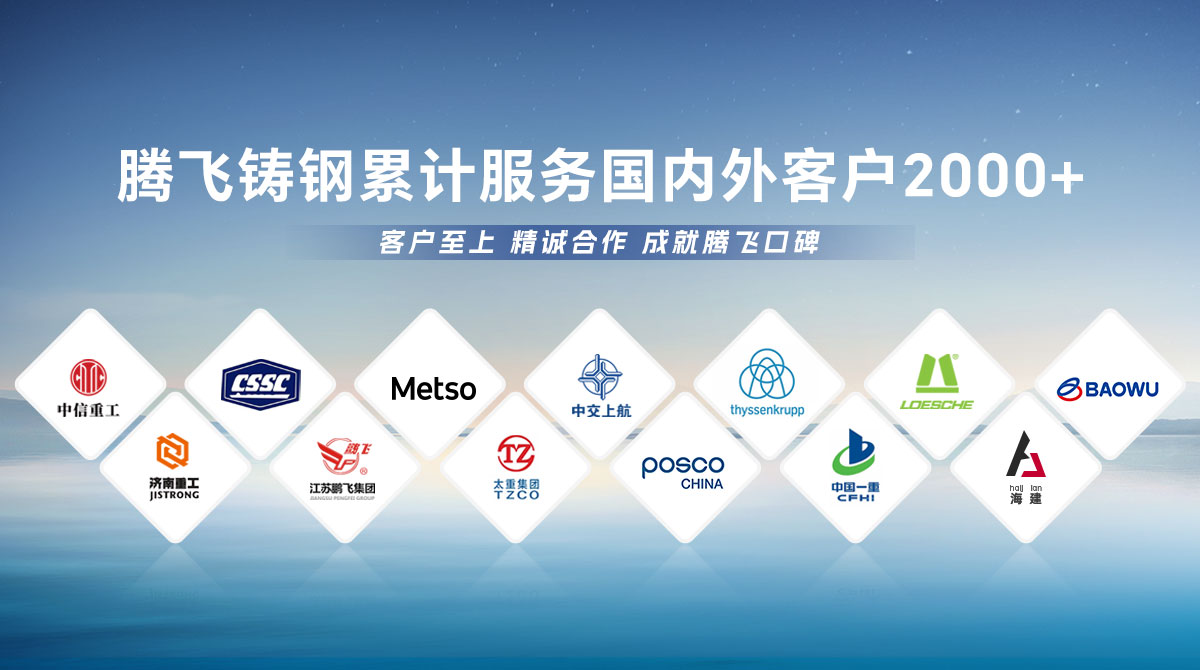 騰飛鑄鋼成立于2006年,位于全國鑄造基地河南省新鄉市,擁有員工300余人,是一家從事150噸以下碳鋼、低合金鋼、不銹鋼鑄鋼件研發、制造、服務為一體的國家高新技術企業。  公司通過了ISO9001國際質量管理體系認證,擁有2項發明專 利,2項河南省科技成果、25項實用新型技術,通過了“環??冃гu級B級企業”驗收,先后榮獲“河南省鑄造行業綠色發展企業”、 “河南省科技型中小企業”、“河南省專精特新中小企業”等榮譽稱號?! 」緭碛?臺25噸電爐,4臺大型天燃氣熱處理爐、10米回旋自動拋丸機一臺, φ8m數控立車、φ10m數控滾齒機等各類高精裝備100余臺套,年產能3萬余噸,能為客戶提供從產品設計、木模加工、大型鑄造、大型加工一站式服務,產品廣泛應用于建材、冶金、鍛壓、冶金、水工、路橋、化工等多個重型行業?! ¢L期服務于中信重工、中船重工、美卓、上海中交、萊歇、寶武、濟南重工等全球知名企業,在行業內擁有較高的市場知名度和美譽度。